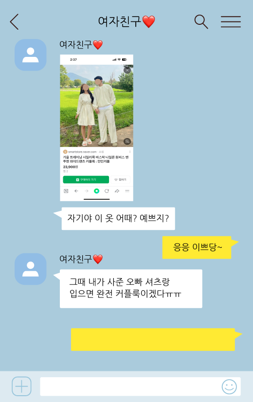 커플룩 예쁘겠다며 옷을 사주겠다고 한다.