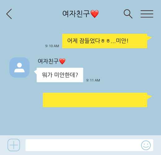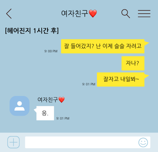 2. 다음 남자의 카톡의 의미로 가장 알맞은 것은?